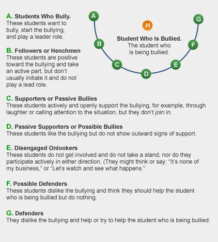 Everyone plays a role in the bullying cycle. Educating the “players” is an important first step in ending the gripping power of bullying. We often focus, to the exclusion of the others, on just the bully or victim. Educating and empowering the other participants, regardless of how passive their roles may be, is a crucial step towards addressing the issue of bullying.